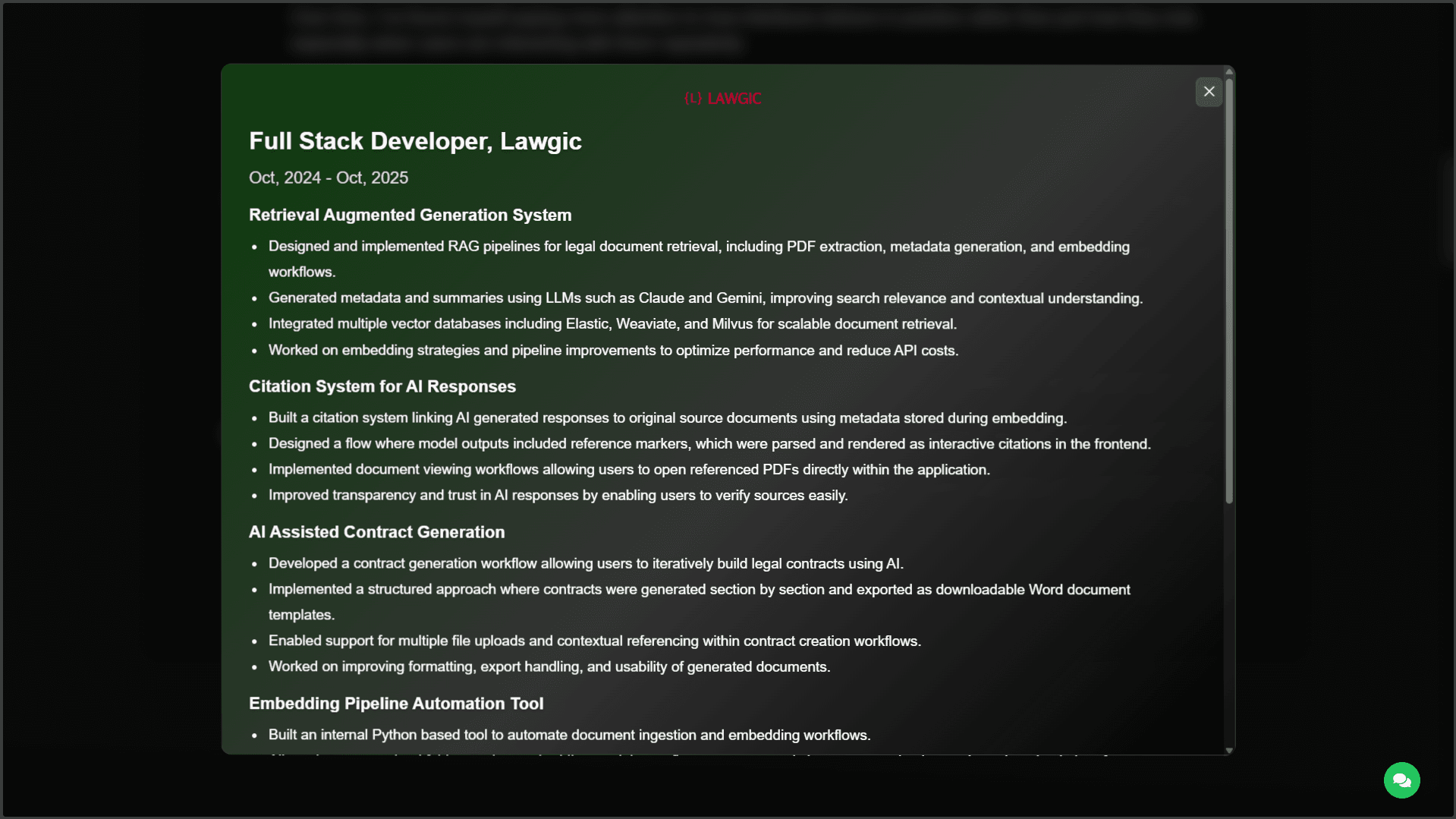 This is the chatbot I built and integrated directly into my portfolio website. I originally started working on it when LLMs were just starting to blow up and tools like ChatGPT were everywhere. Like most people, I was experimenting and trying to understand how these systems worked, so I built an early version of this chatbot back then. It worked, but honestly, it wasn’t great it had a lot of issues, weak responses, and didn’t feel reliable.... Read more