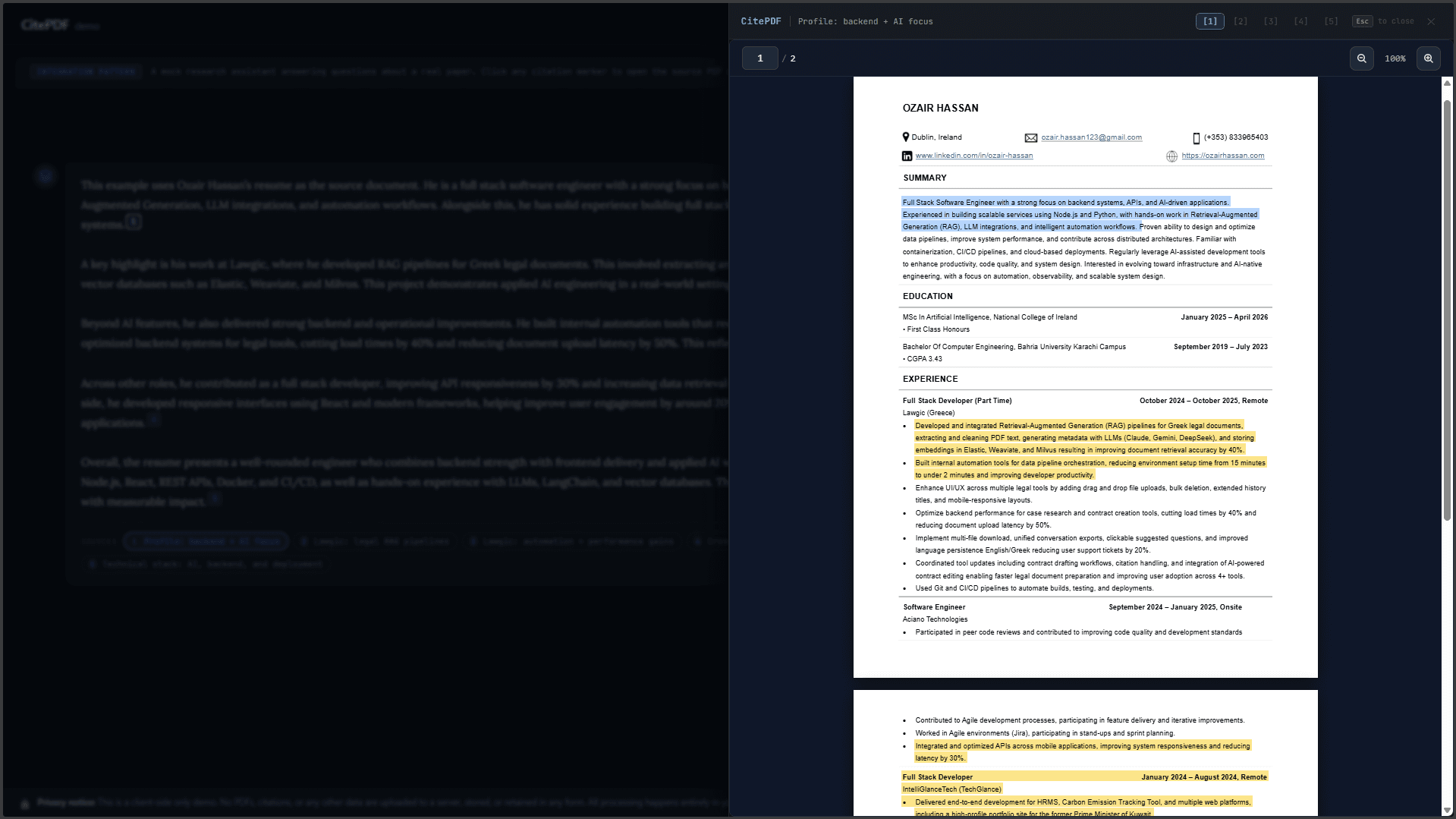 On the backend, I’ve worked with Node.js, Express, and different databases like MongoDB and PostgreSQL while building and maintaining real systems.