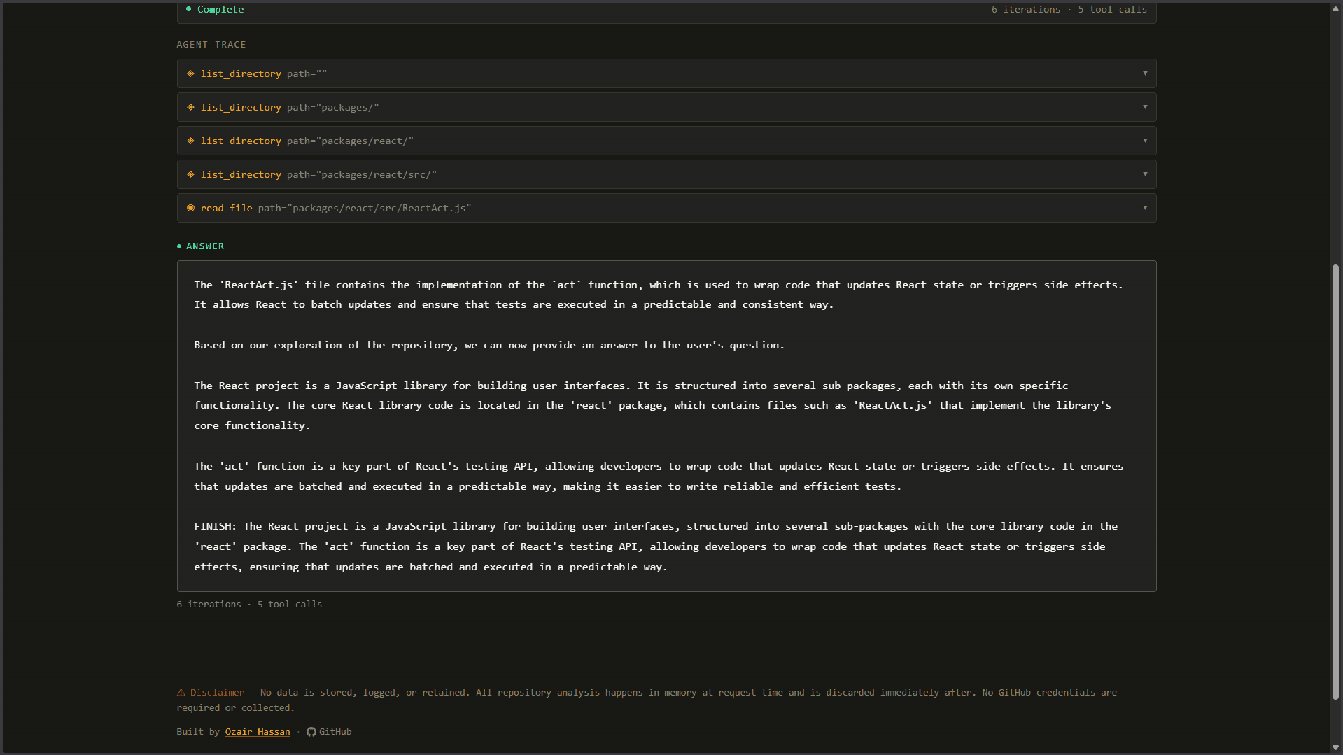 RepoMap is an AI-powered tool that allows users to ask questions about any public GitHub repository. Given a repository link and a query, the agent navigates the codebase using tools such as directory listing and file reading to find relevant information and generate an answer. It also provides a live trace of its reasoning process, showing which tools it uses and what data it inspects.... Read more